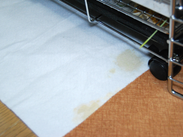 まだケージの下にシートを敷いてなくて、床は悲惨なことに _| ̄|○
