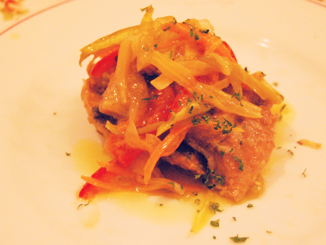 前菜として、エスカベシュ(魚と野菜の南蛮漬け)。