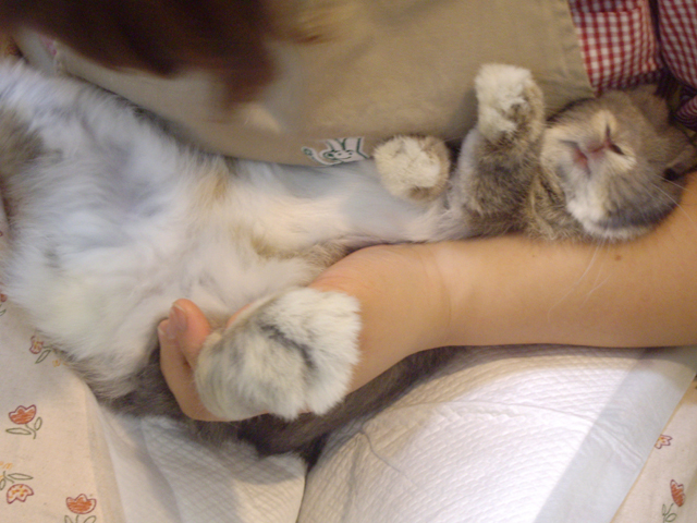 お膝の上でグルーミングをしていたら、腿に大量に粗相をされて、急遽風呂に入らなければいけない事態になったり、大カクカク祭りで凶暴になったり、毎日夜は戦争です。